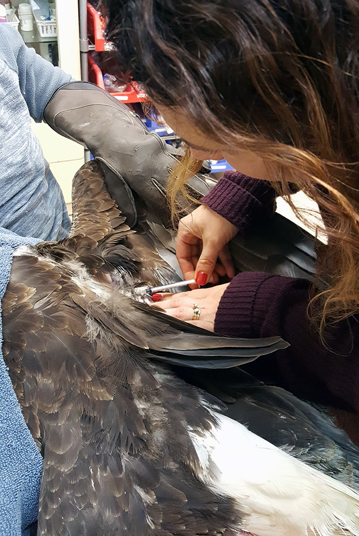 Our 80th Eagle Maverick has a true Eagle Spirit. He came to us with an old compound fracture. 4 inches of his right wing were taken off and then he developed a respiratory infection. The vets have been coming out and seeing him and he is on 4 different kinds of medicine.